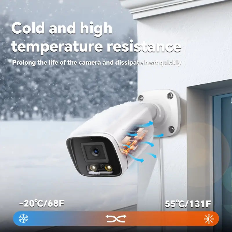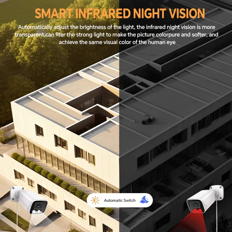 Telecamera pistola PoE, telecamera testa proiettile 4MP, alta qualità esterna, visione notturna bicolore da 2.8mm, rilevamento intelligente di persone, microfono integrato, funzione di movimento, scheda SD/archiviazione cloud, compressione video H.265, utilizzabile con NVR