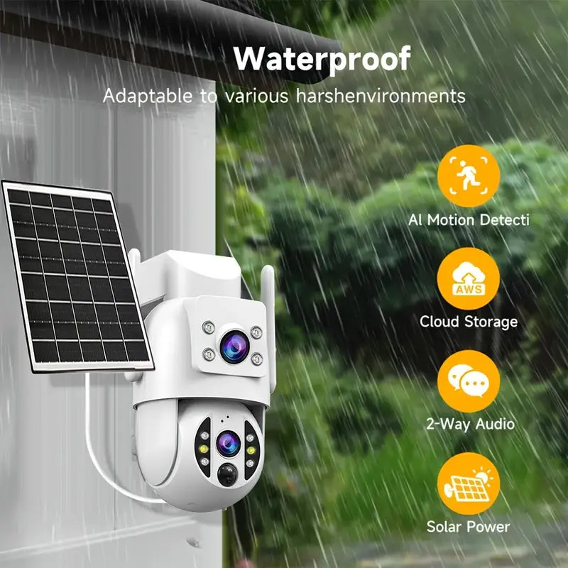 La tecnologia di tracciamento utilizza un sensore PIR, che aiuta a ridurre gli allarmi falsi e a conservare la vita della batteria. Il pacchetto contiene: 1 telecamera wireless a doppio obiettivo, 1 pannello solare, 1 supporto per pannello, 1 set di viti, 1 guida rapida per l'utente e 1 cavo USB-C (senza adattatore di corrente). È dotato di riconoscimento umano tramite intelligenza artificiale e notifiche in-app, utilizzando un sensore PIR di alta qualità basato sulla tecnologia infrarossa passiva per minimizzare l'uso di energia e prevenire gli allarmi sbagliati scatenati da fattori come il vento, le foglie, la neve, gli animali domestici, le variazioni di temperatura e i cambiamenti di luce.